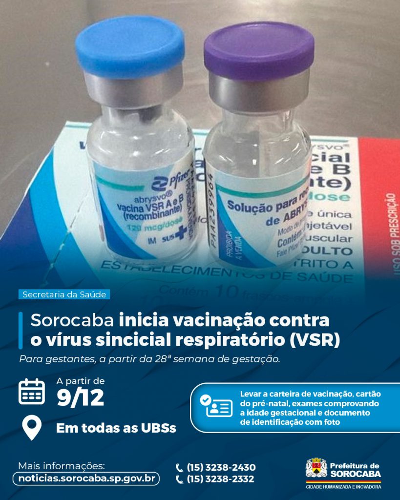 O município de Sorocaba inicia, na próxima terça-feira (9), a partir das 8h, nas 33 Unidades Básicas de Saúde (UBSs), a vacinação contra o vírus sincicial respiratório (VSR).