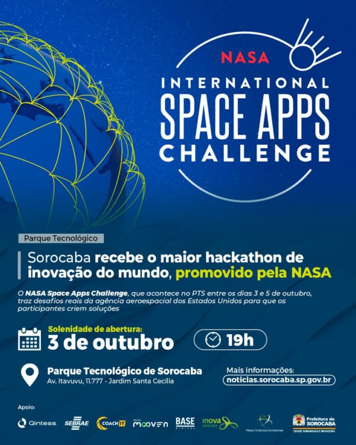 O Parque Tecnológico de Sorocaba (PTS) será sede, entre os dias 3 e 5 de outubro, do NASA Space Apps Challenge, a maior maratona global de inovação. O evento, promovido pela National Aeronautics and Space Administration (NASA), e que tem o apoio do PTS, é realizado de forma simultânea em mais de 185 locais mundo afora e traz desafios reais para serem solucionados com dados abertos da NASA. A solenidade de abertura do evento está marcada para as 19h desta sexta-feira (3), no auditório principal do PTS.
