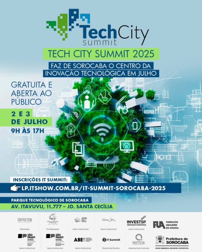 Dentro da programação do Tech City, um dos destaques é o IT Summit Sorocaba 2025. No dia 3 de julho, este evento, voltado para os setores de Tecnologia da Informação, Cibersegurança e Soluções Inteligentes, reunirá conteúdos técnicos e estratégicos de alto nível, com a presença de líderes do setor e de grandes empresas de tecnologia do Brasil e do mundo. As vagas para participar do IT Summit são limitadas e passíveis de aprovação. As inscrições podem ser feitas por meio do link: https://lp.itshow.com.br/it-summit-sorocaba-2025.