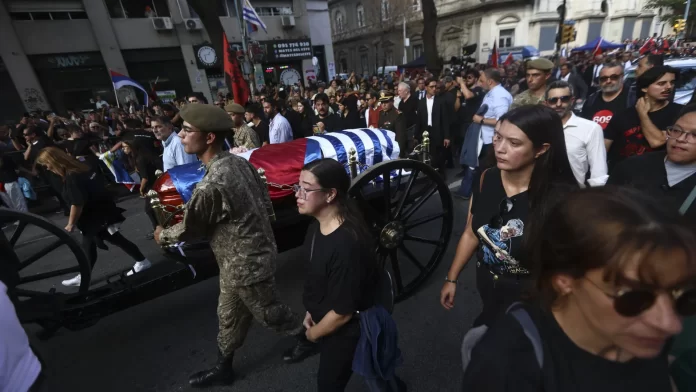 Quando o caixão do ex-presidente deixou o prédio, o público cantava entre lágrimas: “somos orientales [como os uruguaios se chamam] até a eternidade”. Políticos, militantes de esquerda e funcionários da Casa Legislativa que conviveram com Mujica aplaudiam e gritavam palavras de agradecimento. Após cantar em homenagem a ele o músico e amigo de Pepe Mario Carrero lembrou-se que esteve na casa do esquerdista no fim de semana. “Cantamos, conversamos e pensamos na vida. Vou sentir saudades.”