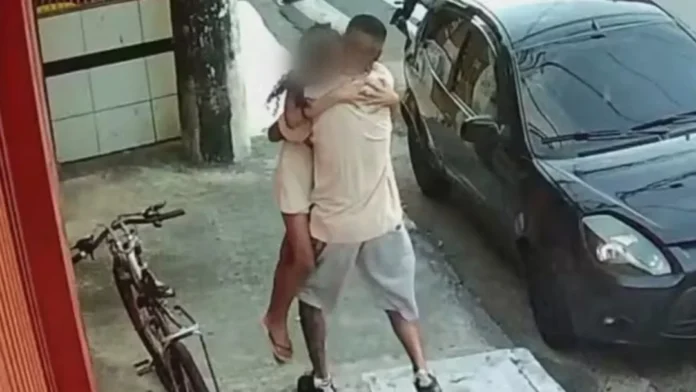 Imagens captadas por uma câmera de segurança mostram o instante em que um pai abraça a filha logo após ela escapar de um atropelamento que resultou…